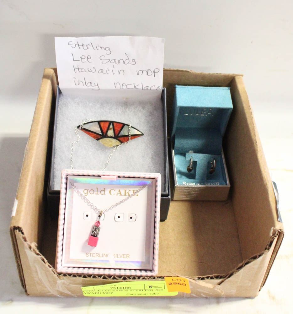 INLAY NECKLACE. STERLING .925 CRYSTAL NECKLACE, .925 EARRINGS