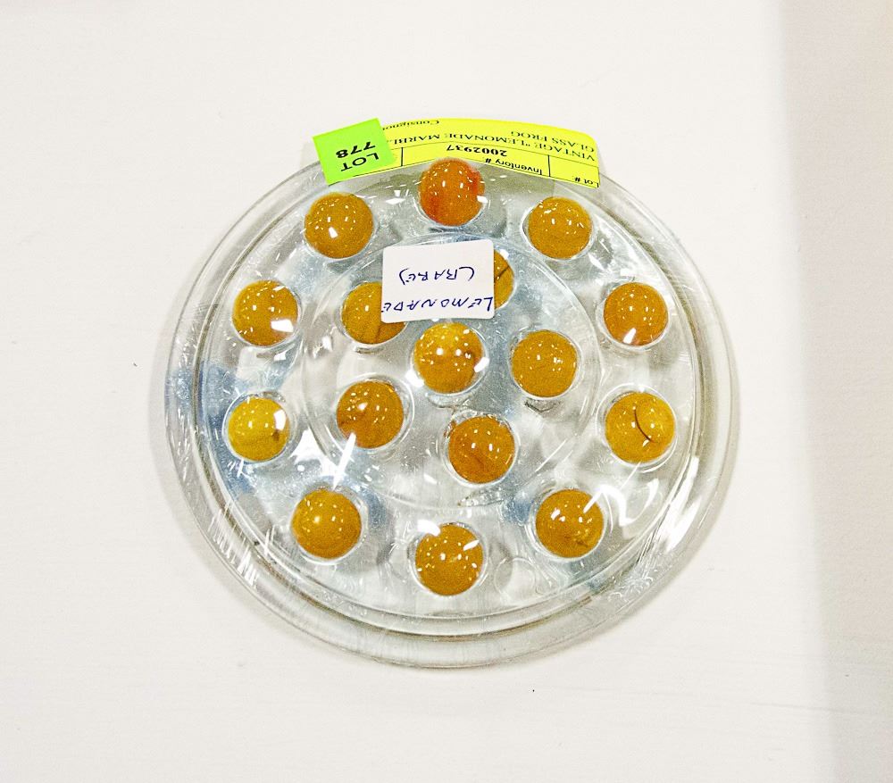 VINTAGE "LEMONADE MARBLES" IN GLASS FROG