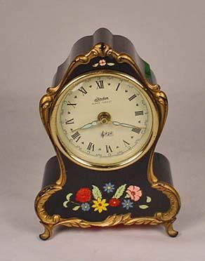 VINTAGE LINDEN BLACK FOREST ENAMELED MUSICAL CLOCK - EDELWEISS - WORKS
