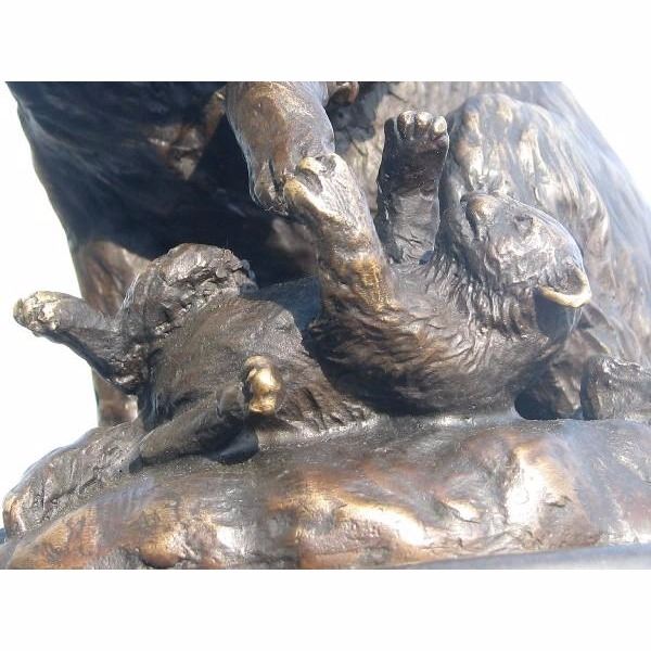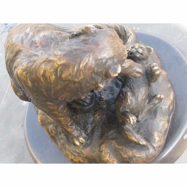 The male lions produce many offspring, but only slightly tolerate the cubs theysire. They treat them with a harshness to help them survive. These lions sitstoically with little indifference to the cubs. This wonderful piece is cast in bronze and finished with a patina to enhance the beauty and character of this great work of art. Condition: This sculpture is in a very good condition. Bronze Dimensions with Marble Base:Height 6" x Width 6"Marble Dimensions:Diameter 5 1/2"Height without base: 5 1/2 " Weight : 5 LBSInventory : 3430K08543 The male lions produce many offspring, but only slightly tolerate the cubs theysire. They treat them with a harshness to help them survive. These lions sitstoically with little indifference to the cubs. This wonderful piece is cast in bronze and finished with a patina to enhance the beauty and character of this great work of art. Condition: This sc
