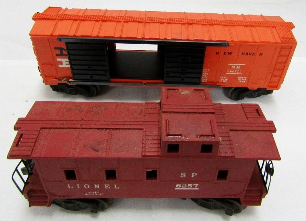 6468-25 NEW HAVEN AUTOMOBILE TRANSPORT DOUBLE DOOR BOXCAR & 6257 ILLUMINATED CABOOSE (UNTESTED). THE NH AUTOMOBILE TRANSPORT IS IN VERY NICE CONDITION AND JUST NEEDS A LIGHT CLEANING. THE CABOOSE NEEDS A GOOD CLEANING.