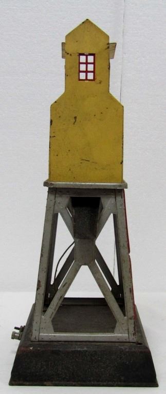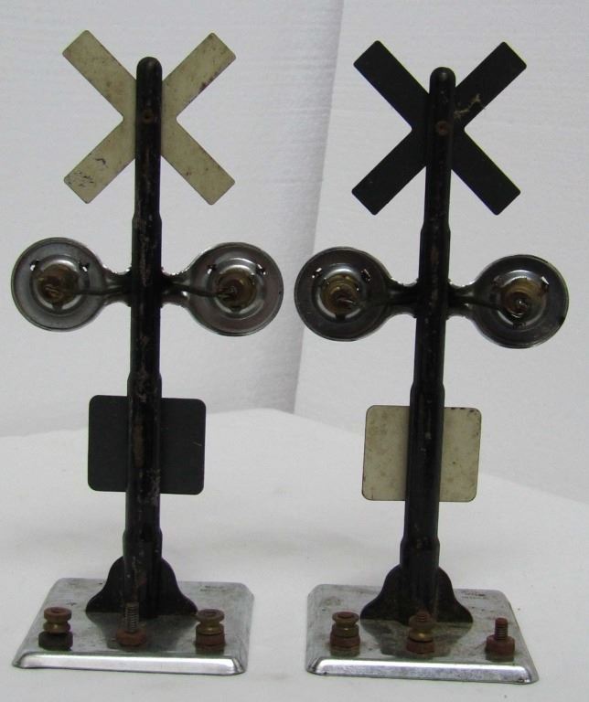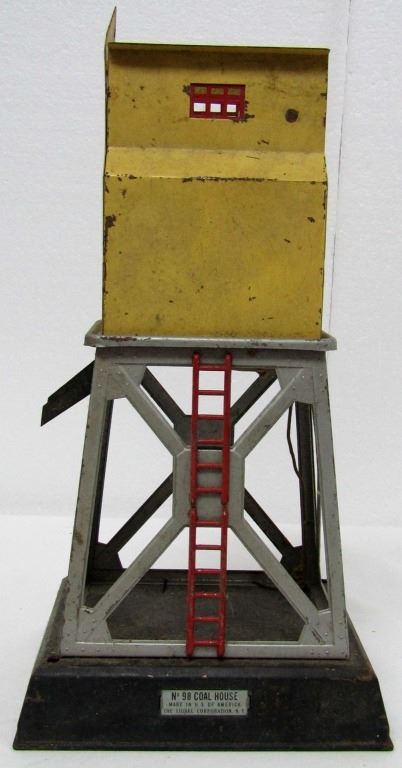 5 PIECES IN THIS LOT. NO. 89 COAL HOUSE, NO. 252 CROSSING GATE, 2-RAILROAD CROSSING SIGNALS, AND NO. 46 AUTOMATIC CROSSING GATE. UNTESTED. SCRATCHES, SCRAPES, AND SHIPS IN THE PAINT. SOME DENTS AND DINGS. COAL HOUSE