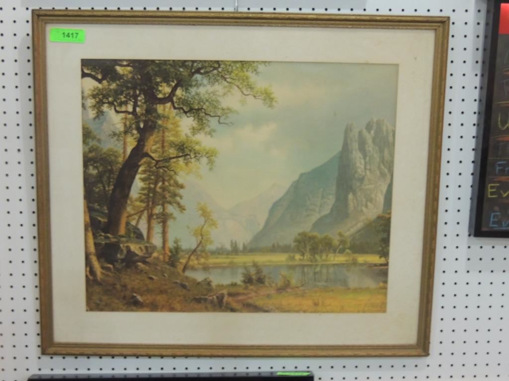 VINTAGE LITHOGRAPH MOUTAIN SCENE, DECORATIVE, VINTAGE, WALL ART, MATTED AND FRAMED, VITNAGE WOODED, STREAM, WALL ART, GALLERY ART, AS SHOWN SEE PHOTO FOR MORE DETAILS.