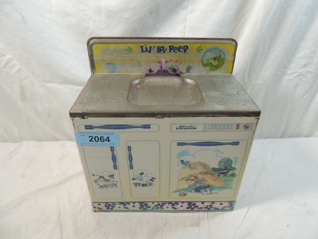 LIL BO PEEP TIN LITHO SINK PLAY KITCHEN SET, WOLVERINE LIL BO PEEP TIN YELLOW TOY KITCHEN AS SHOWN SEE PHOTO FOR MORE DETAILS.