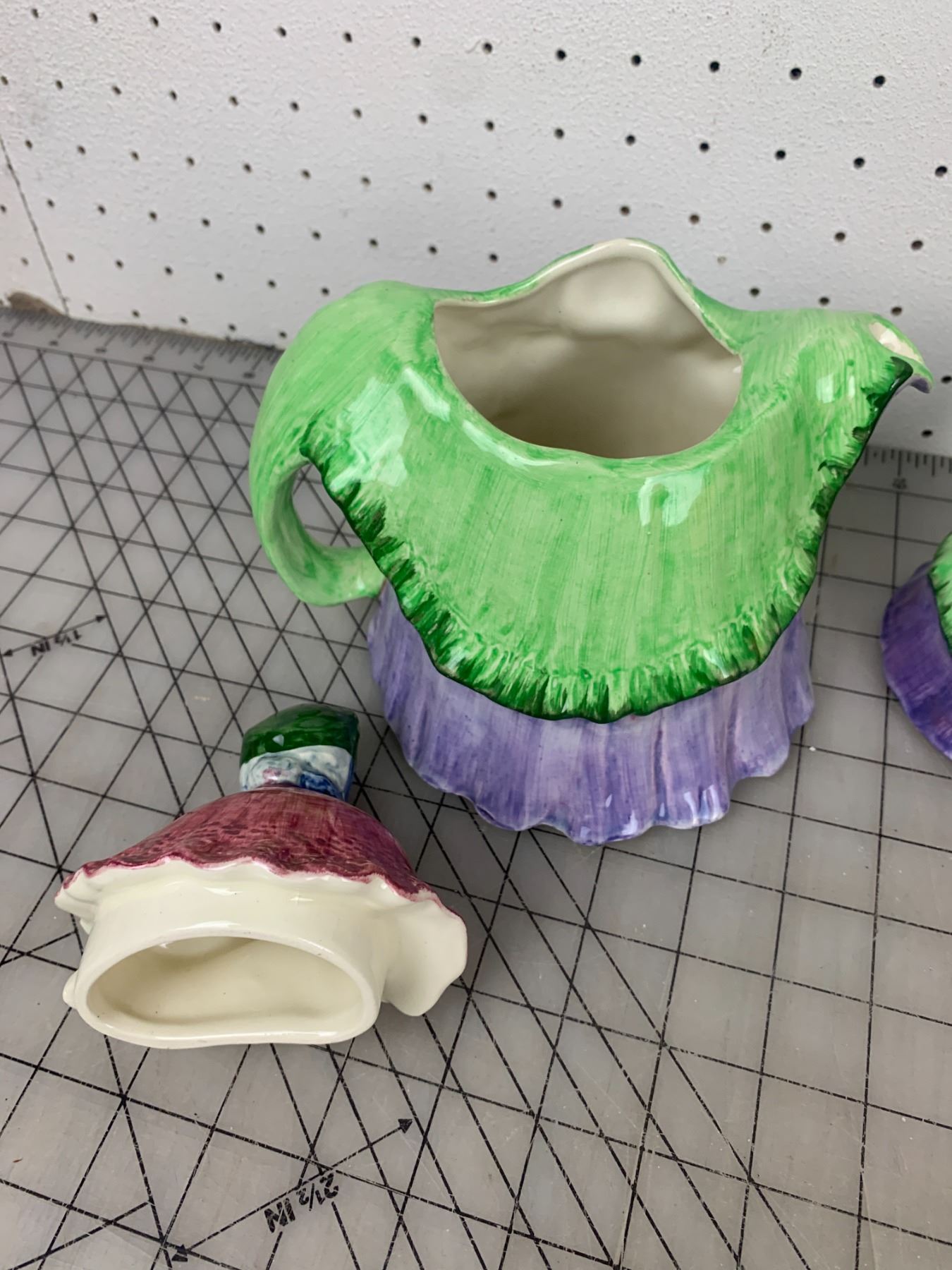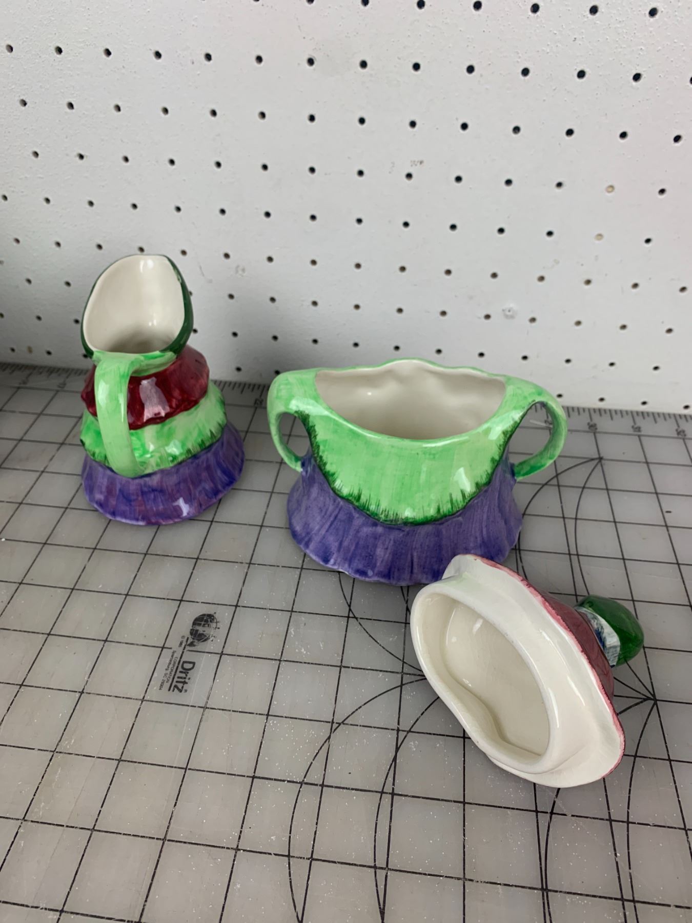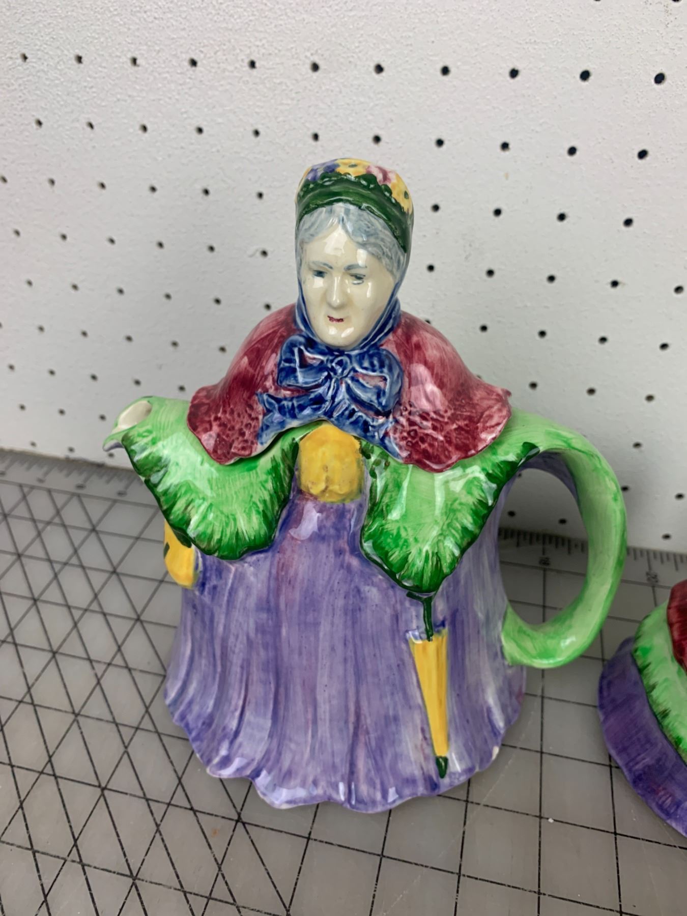 VINTAGE LITTLE OLD LADY ENGLAND TEA POT CREAM AND SUGAR SET