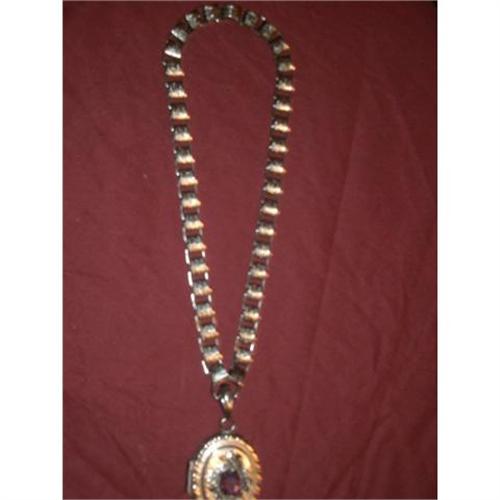 VINTAGE LOCKET AND NECKLACE WHIT ENGRAVED FLORAL MOTIFS GREAT CONDITION ca.20th 18 1/2-locket 2 x 1 1/2