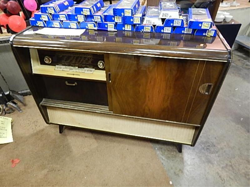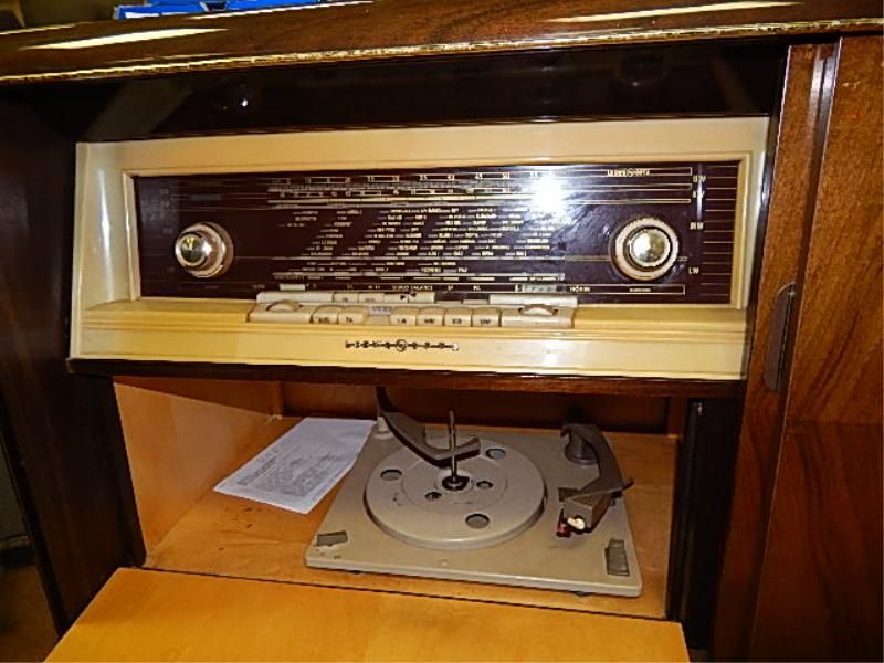 VINTAGE LOEWE-OPTA CONSOLE RADIO / WITH TURN TABLE - GERMAN - WITH SHORT WAVE RADIO - WORKING