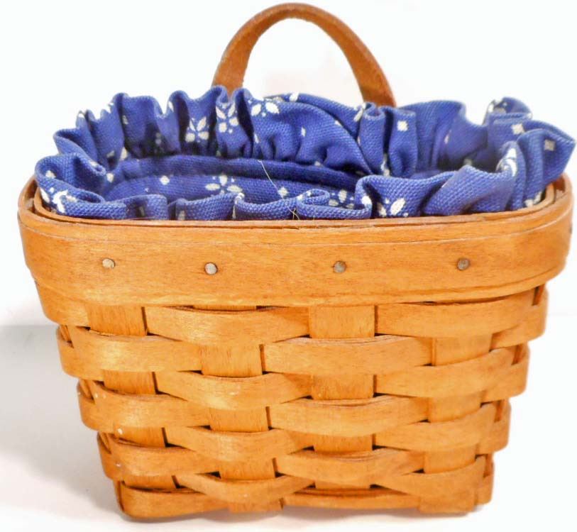 Approx. 5" by 3" by 7" tall. Has leather strap on back for hanging