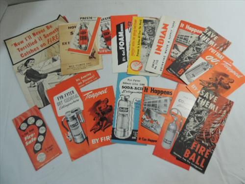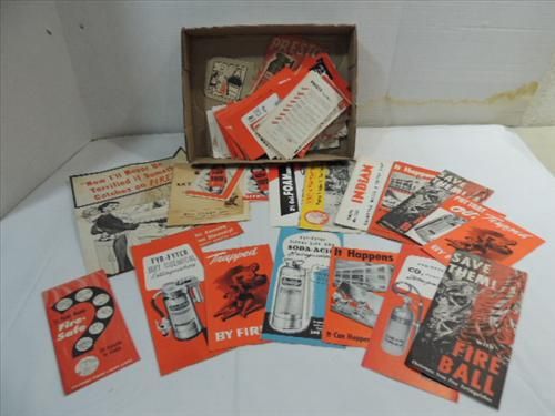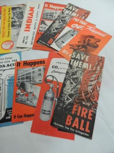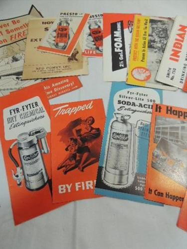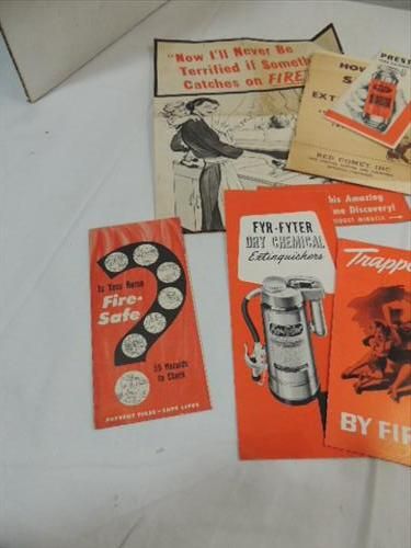 VINTAGE LOT 1950S EMPERIA FIRE PROTECTION BROCHURES: FIRE GLASS BALLS, EXTINGUISHERS, FIRE SAFETY RULES AND MORE. AS SHOWN. VIEW PICTURE FOR DETAIL.