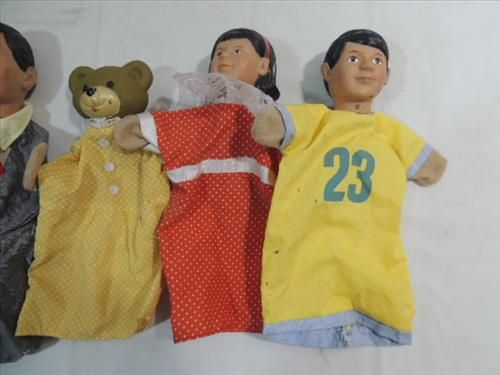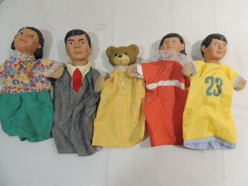 VINTAGE LOT 5 FAMILY HAND PUPPETS INTERACTIVE THERAPY TOOL. AS SHOWN. VIEW PICTURE FOR DETAIL.