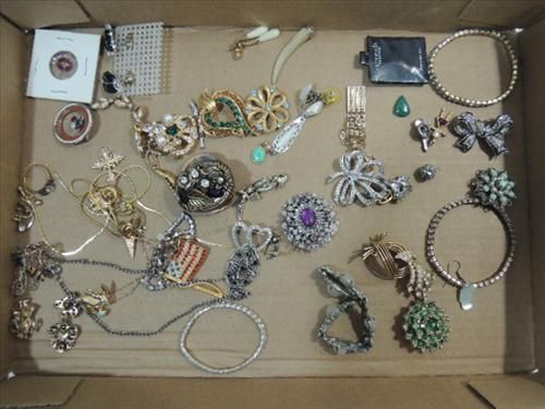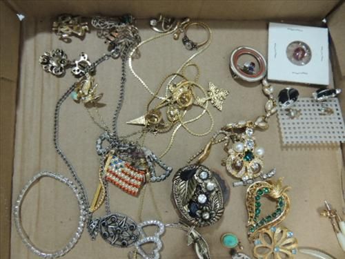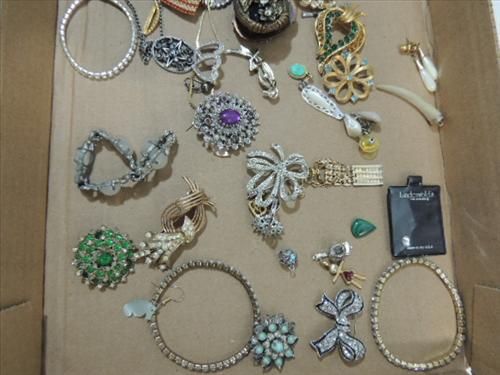 VINTAGE LOT CUSTOME JEWELRY: RHINESTONE BROACHES, BRACELETS & NECKLACES. AS SHOWN. VIEW PICTURE FOR DETAIL.