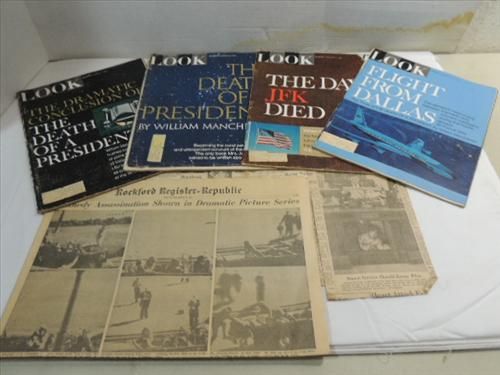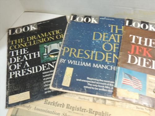 VINTAGE LOT NOVEMBER 29, 1963 KENNEDY EMPHERIA: 4 LOOK MAGAZINES AND THE ROCKFORD NEWSPAPER COVERING THE ASSINATION. AS SHOWN. VIEW PICTURE FOR DETAIL.