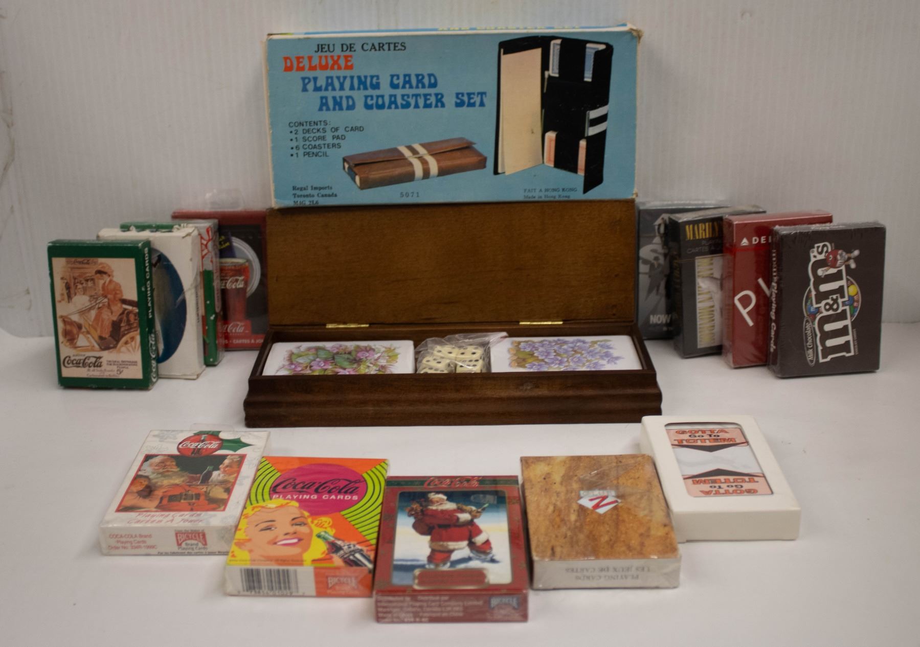 IN CASES W/SEALED/UNUSED PLAYING CARDS DELTA AIRLINES, MARILYN MONROE, TOTEM,ZELLERS, COCA COLA, CANADIAN AIRLINES & MORE