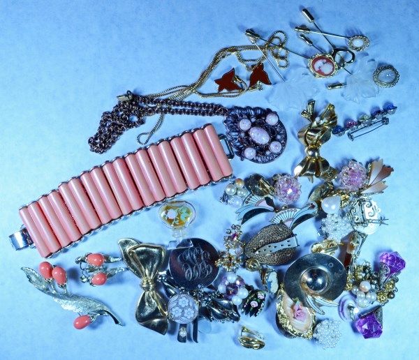What you see is what you get. Nice clean lot - stick pins, clip back earrings. Most not signed, but still nice.