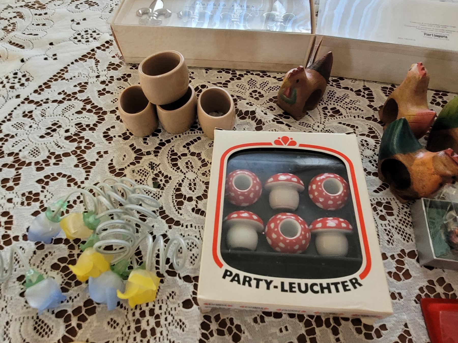 BURKE & WALLACE, PIER ONE IMPORTS, OLDER WOODEN, PLASTIC, CERAMIC AND MORE