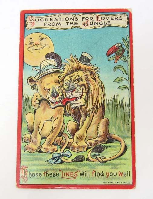 VINTAGE 'LOVERS FROM THE JUNGLE' LIONS ART POSTCARD