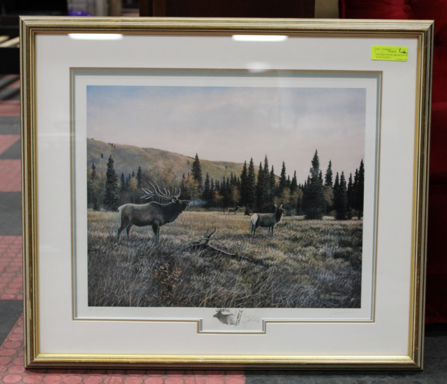 1989 ELK SCENE PRINT SIGNED BY J. HEBERT WITH HAND-DRAWN PENCIL DRAWING IN PLAQUE LOCATION (26"-TALL X 30"W) **ALL ITEMS MUST BE REMOVED BY 5PM SATURDAY, DECEMBER 10TH 2022. ALL REMAINING ITEMS WILL BE SUBJECT TO A $6.00 PER DAY STORAGE CHARGE. ANY ITEMS REMAINING AFTER MONDAY, DECEMBER 25TH, 2022 WILL BE CONSIDERED FORFEITED. NO REFUNDS WILL BE ISSUED FOR FORFEITED ITEMS. TO SCHEDULE A PICK UP APPOINTMENT CLICK HERE