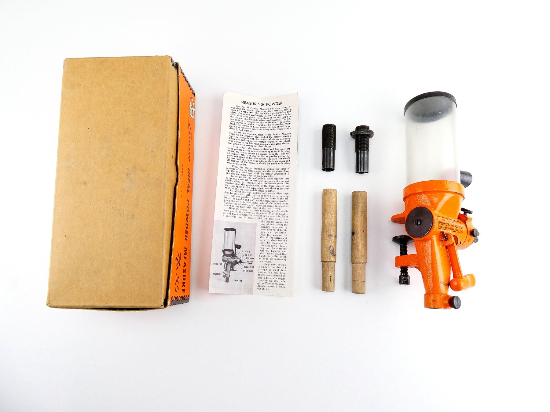 (1) NO.55 POWDER MEASURE WITH ORIGINAL PACKAGING & INSTRUCTIONS, MAY REQUIRE ADJUSTMENTS AND/OR MAY NOT BE COMPLETE. SEE PHOTOS.