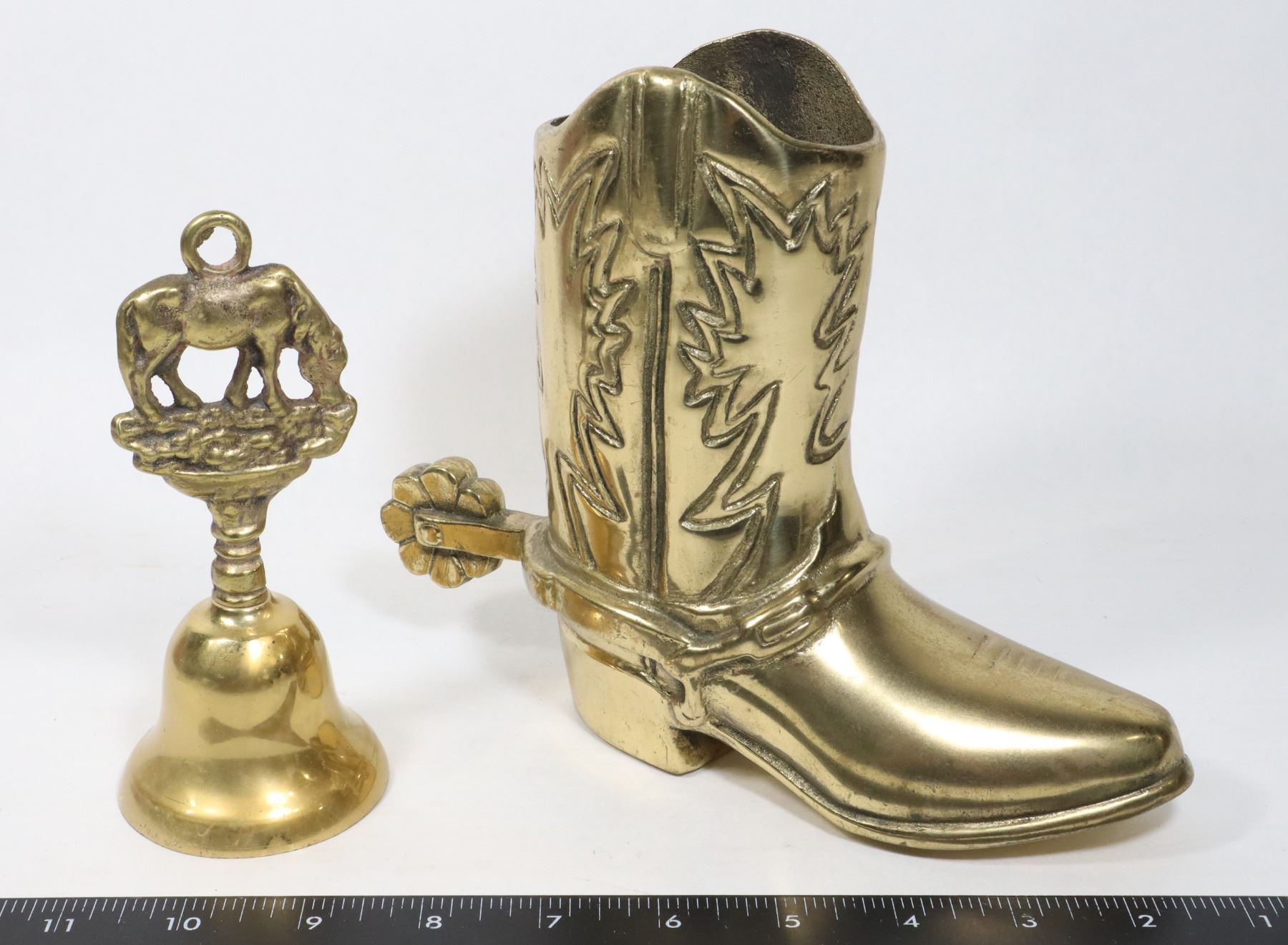WITH LARGE BRASS COWBOY BOOT. BOOT APPROX 6.5" TALL
