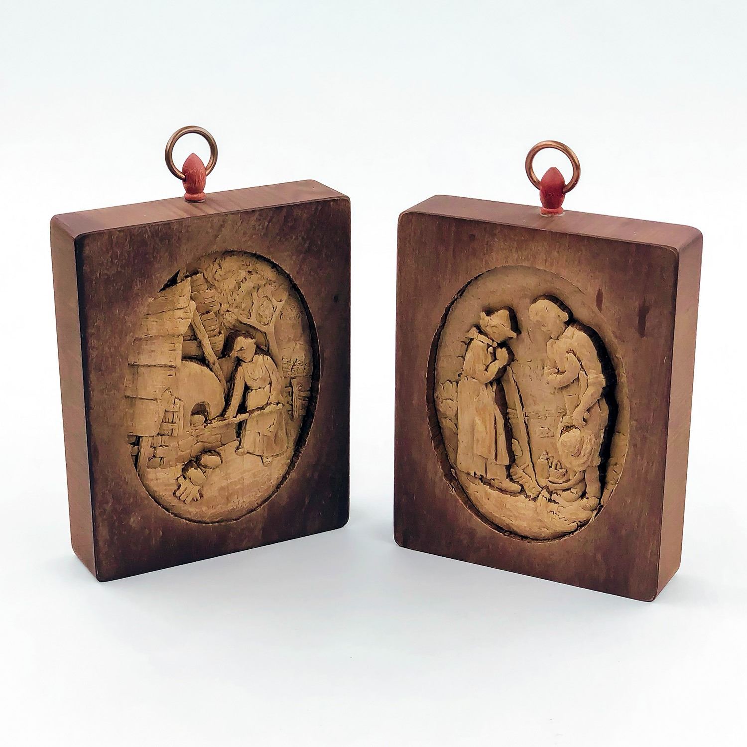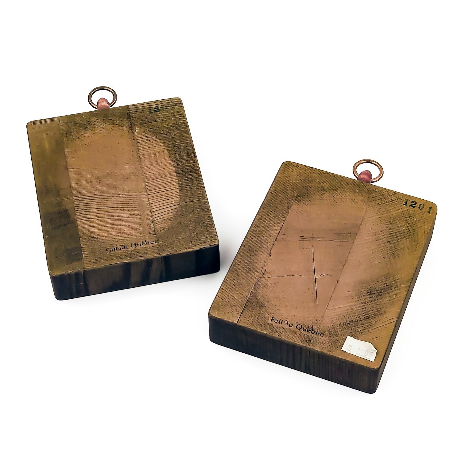 #9392 - PAIR OF WOOD CARVINGS WITH DIFFERENT IMAGES, WALL PLAQUES, AGE AND ARTIST UNKNOWN, THEY MEASURE 5” (12.5 CM) TALL, 4” (10 CM) WIDE, 1” (2.5 CM) THICK EACH***ITEM(S) LOCATED IN LETHBRIDGE ALBERTA. ALL ITEMS IN THIS AUCTION QUALIFY FOR OUR FREE TRANSPORT TO EDMONTON SERVICE. WORLDWIDE SHIPPING AVAILABLE
