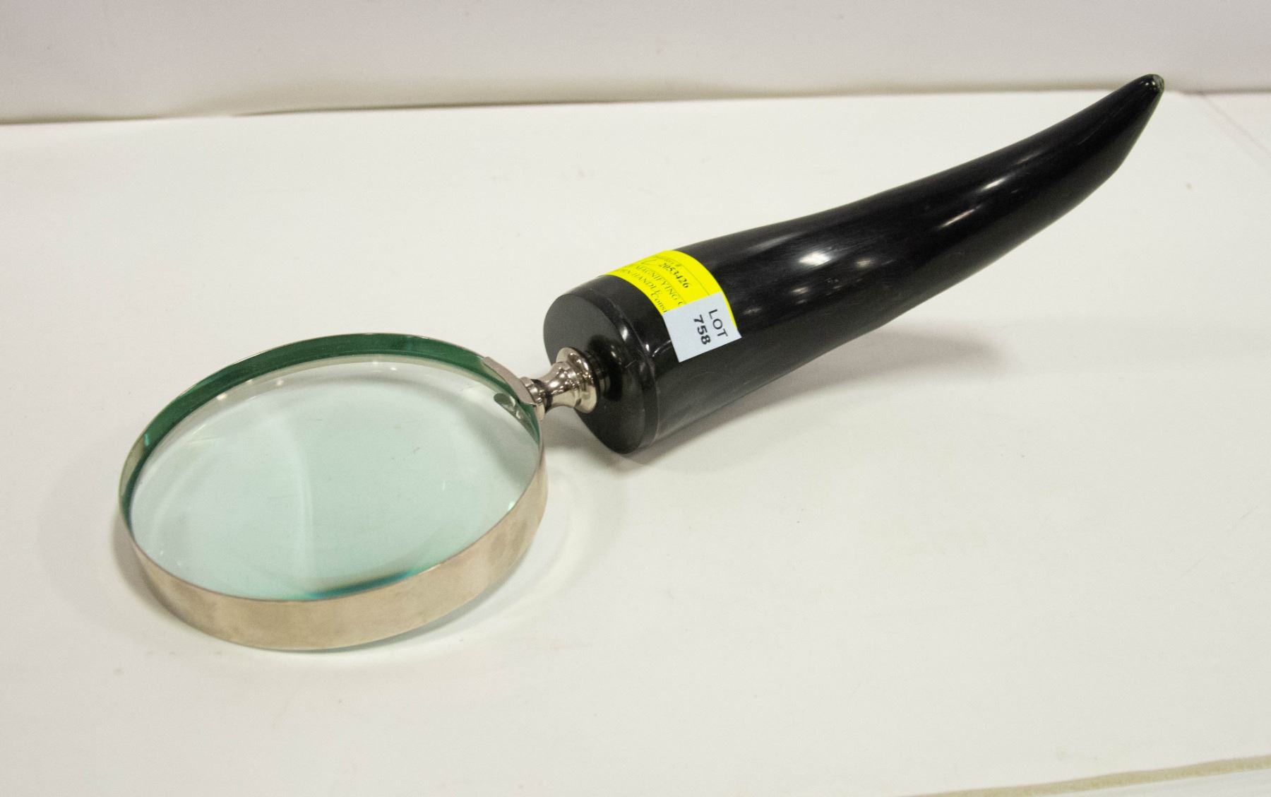 VINTAGE MAGNIFYING GLASS, REAL BULL HORN HANDLE