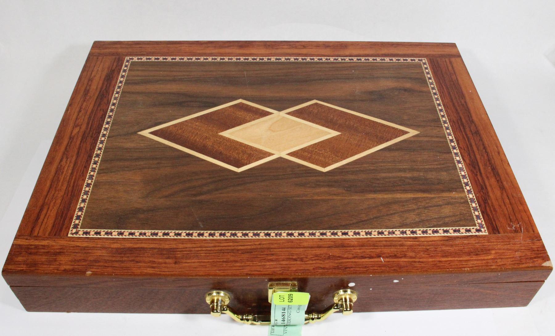 WOOD BOX, INLAY DIAMOND PATTERN, 30X40CM.