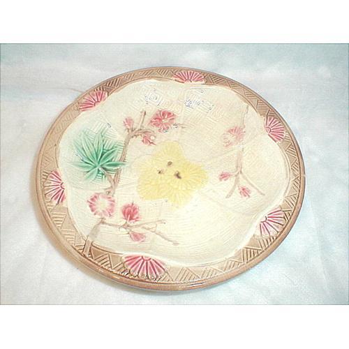 THIS SALE IS FOR A VINTAGE MAJOLICA BAMBOO AND BASKETWEAVE BOWL THAT MEASURES 1 1/4 IN. TALL AND 8 IN. IN DIAMETER. THE COLORS OF THIS BOWL ARE DEEP ROSE, YELLOW, BROWN AND GREEN ON AN OFF WHITE BACKGROUND WITH BROWN AROUND THE EDGES. THERE IS A SMALL CHIP ON THE EDGE BUT THE REST OF THE BOWL IS IN GOOD CONDITION.