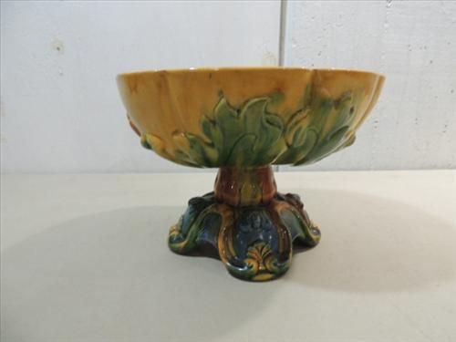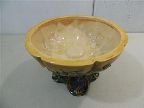 VINTAGE MAJOLICA CERAMIC URN 10"D NICE COLORING. NO MAKER MARK. SOME CRAZING. AS SHOWN. VIEW PICTURE FOR DETAIL.