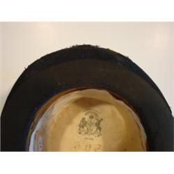 VINTAGE MAN'S BLACK TOP HAT. Shows signs of wear. Marked on inside of top "Superior Quality-Registered Moveo Et Proficio-New York".