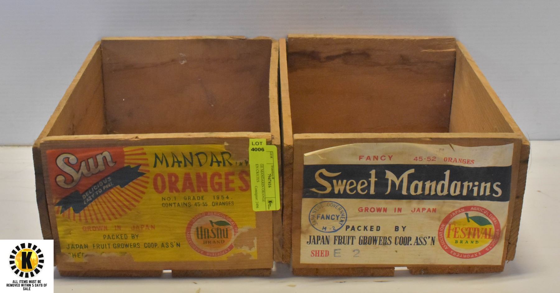 VINTAGE MANDARIN ORANGE WOODEN CRATES