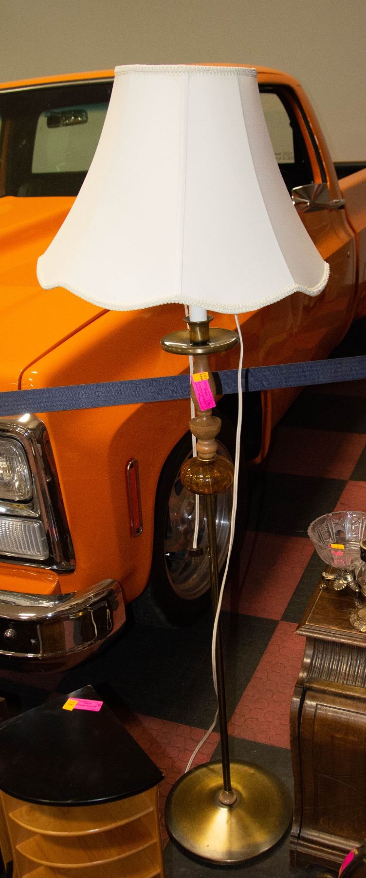 VINTAGE MAPLE AND AMBER GLASS FLOOR LAMP