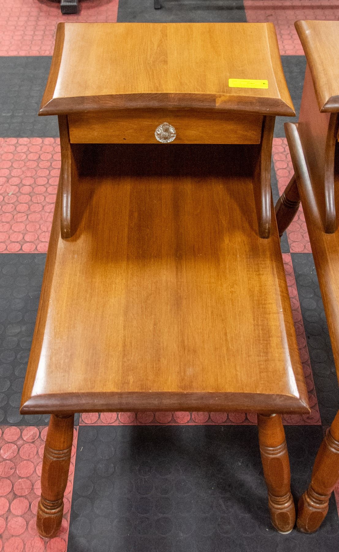 VINTAGE MAPLE WOOD 2 TIER SIDE TABLE WITH DRAWER