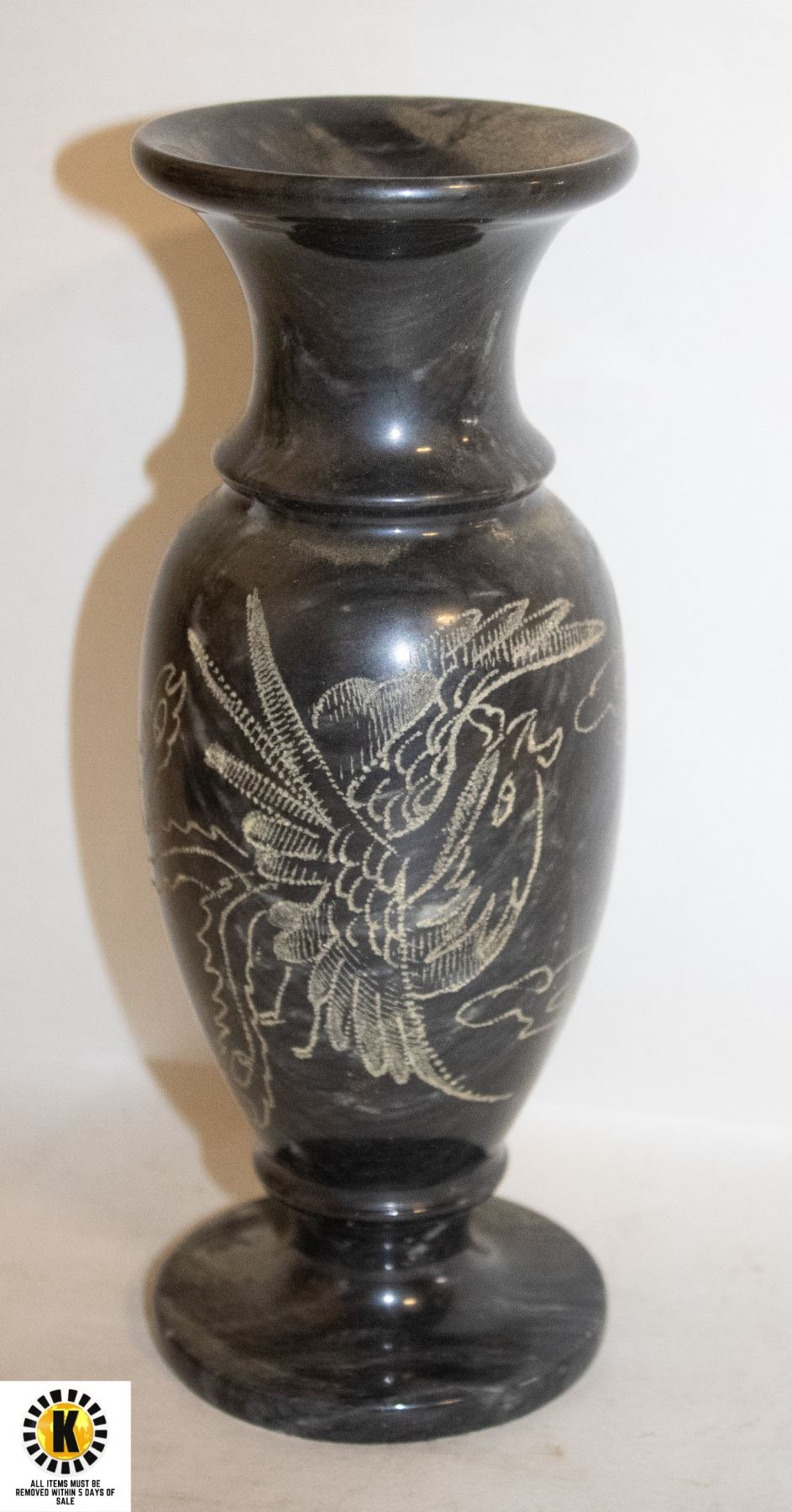 VINTAGE MARBLE ETCHED VASE 8"