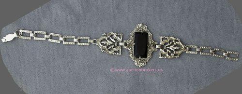VINTAGE MARCASITE AND ONYX LINK STYLE BRACELET. 6.3 GRAMS.