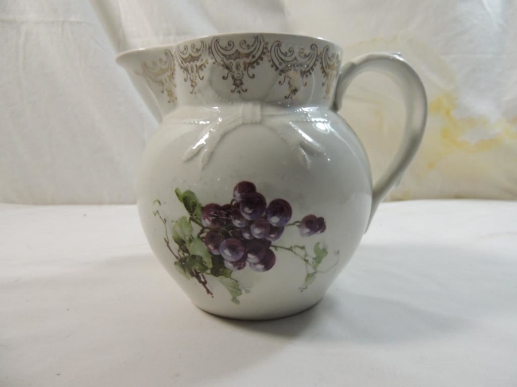 VINTAGE DECORATIVE PITCHER GRAPES, BOW DETAILS. VINTAGE TABLEWARE, AS SHOWN SEE PHOTO FOR MORE DETAILS
