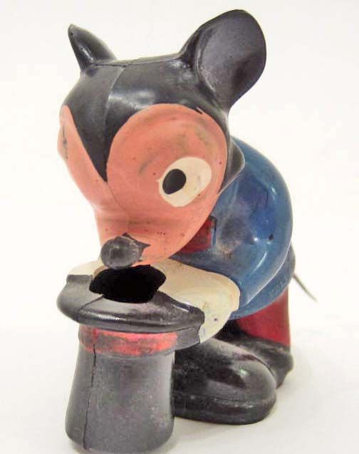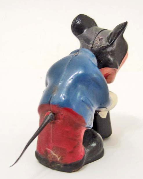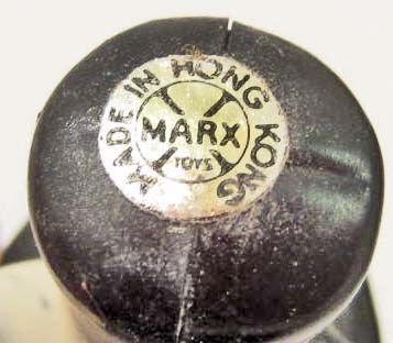 Celluloid and is approx. 2.5" tall. Has a Marx sticker on his foot