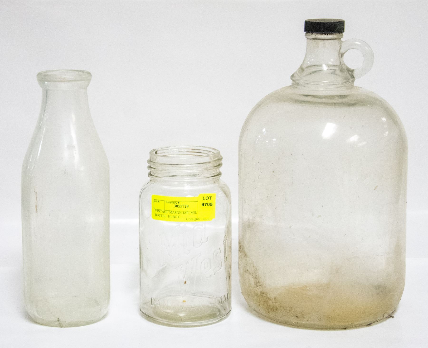 VINTAGE MASON JAR, MILK BOTTLE, HI BOY