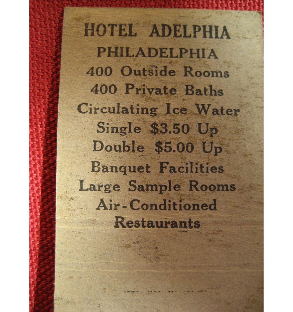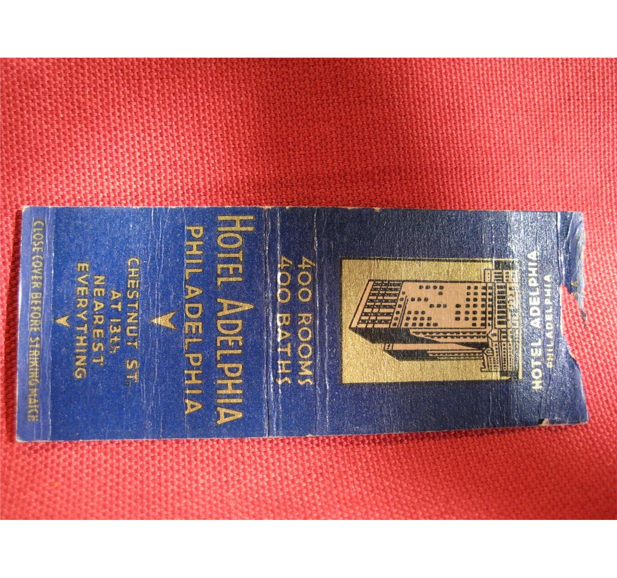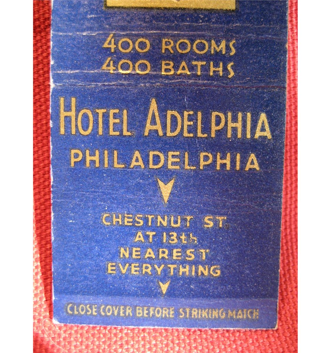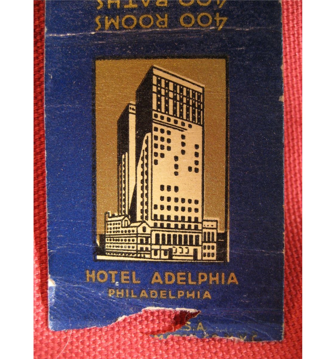 VINTAGE MATCHBOOK COVER HOTEL ADELPHIA PHILADELPHIA 400 ROOMS 400 BATHS