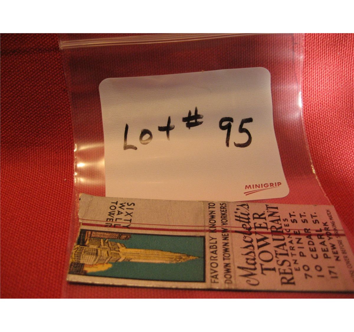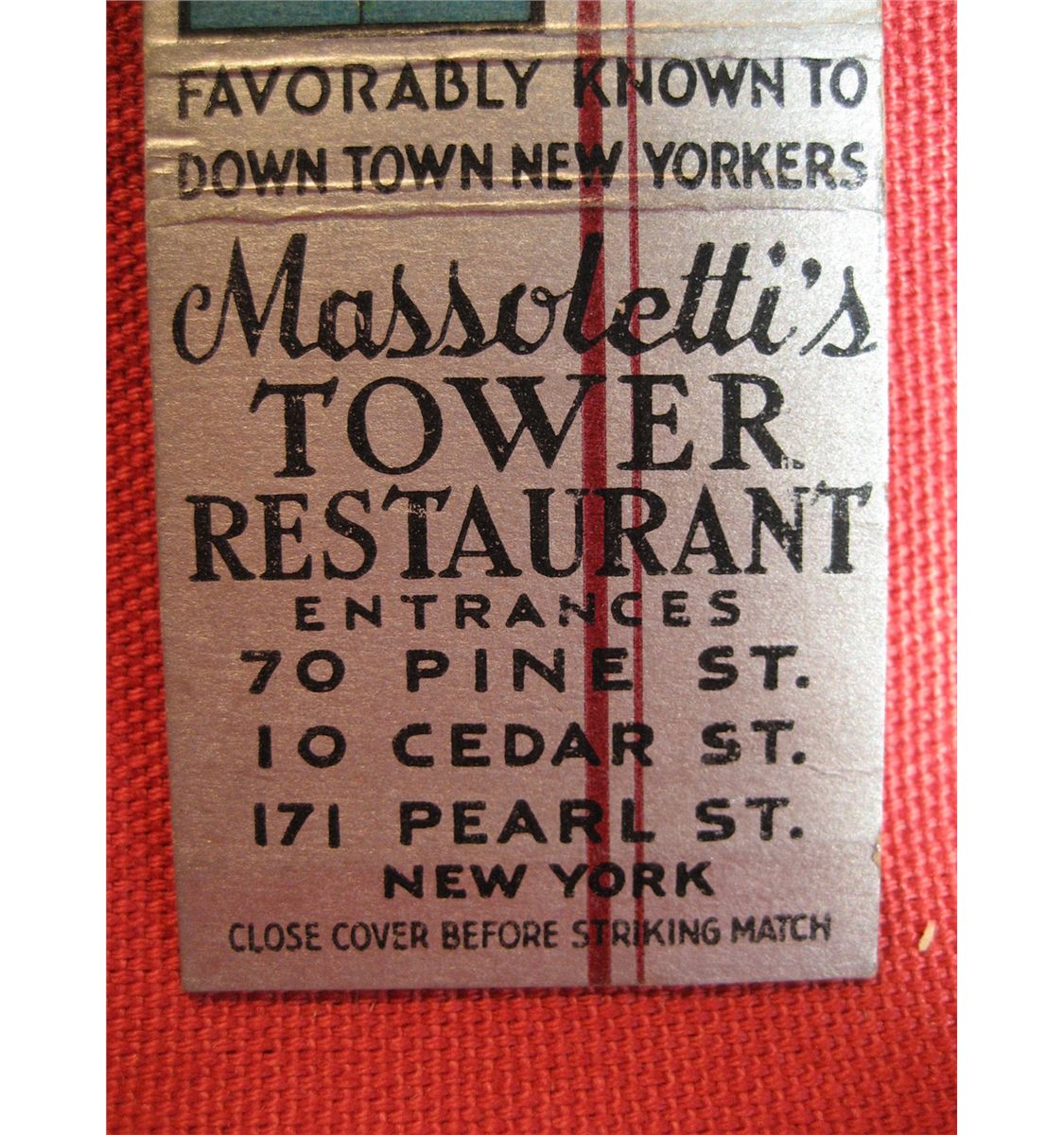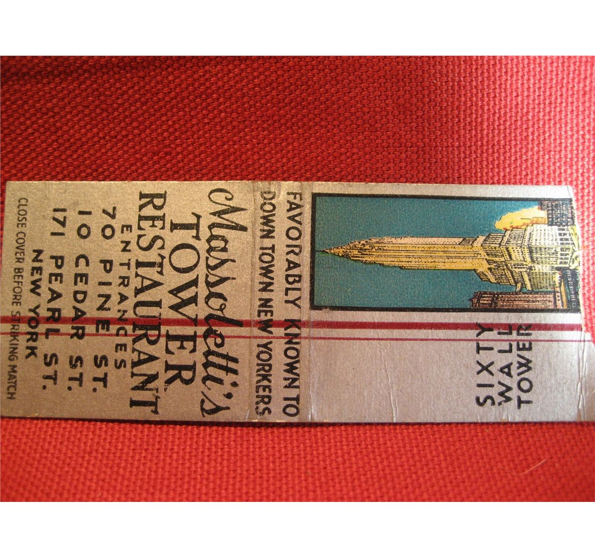 VINTAGE MATCHBOOK COVER MASSOLETTI'S TOWER RESTAURANT SIXY WALL TOWER