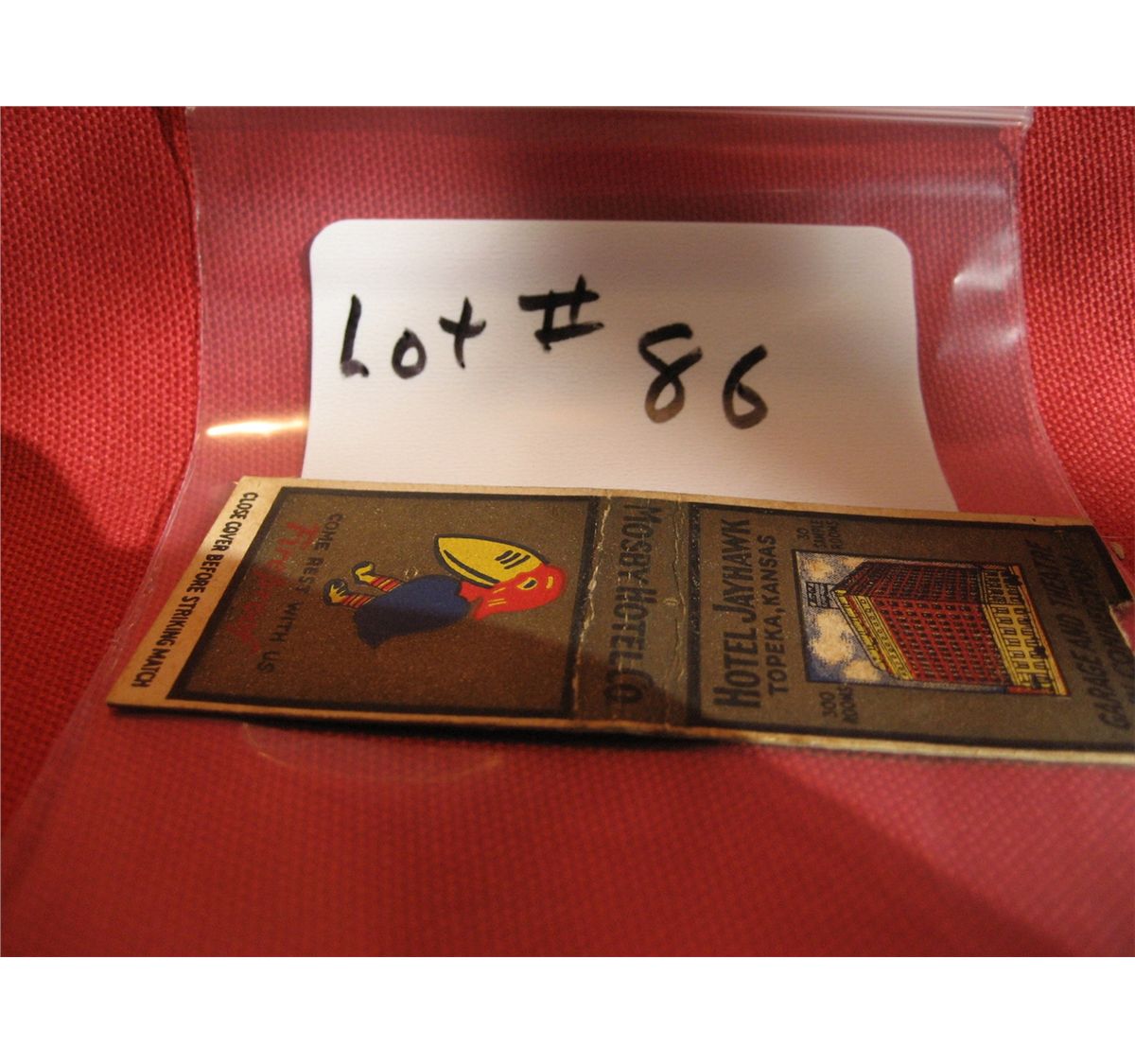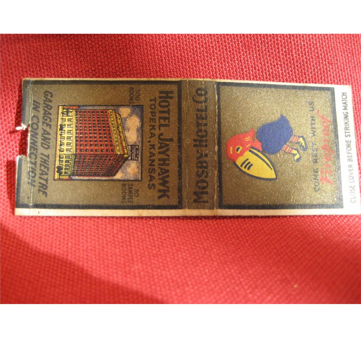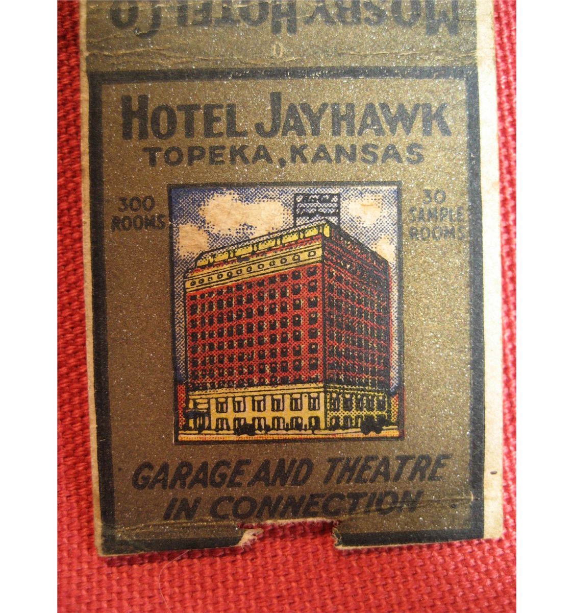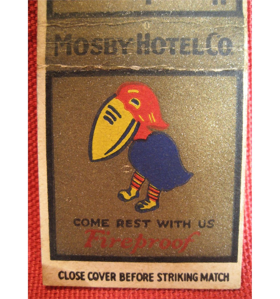 VINTAGE MATCHBOOK COVER MOSBY HOTEL HOTEL JAYHAWK TOPEKA KANSAS