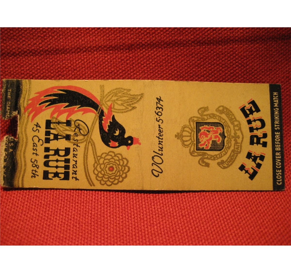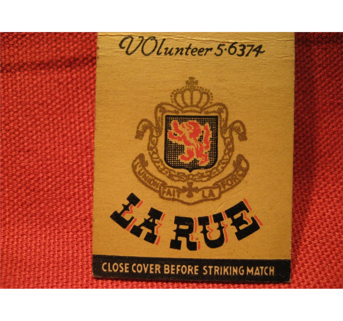 VINTAGE MATCHBOOK COVER RESTAURANT LA RUE VOLUNTEER 5-6374
