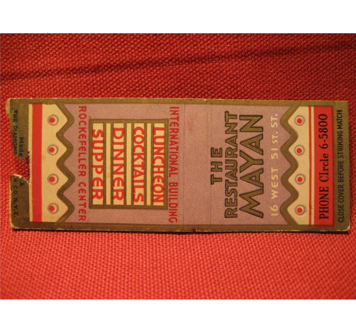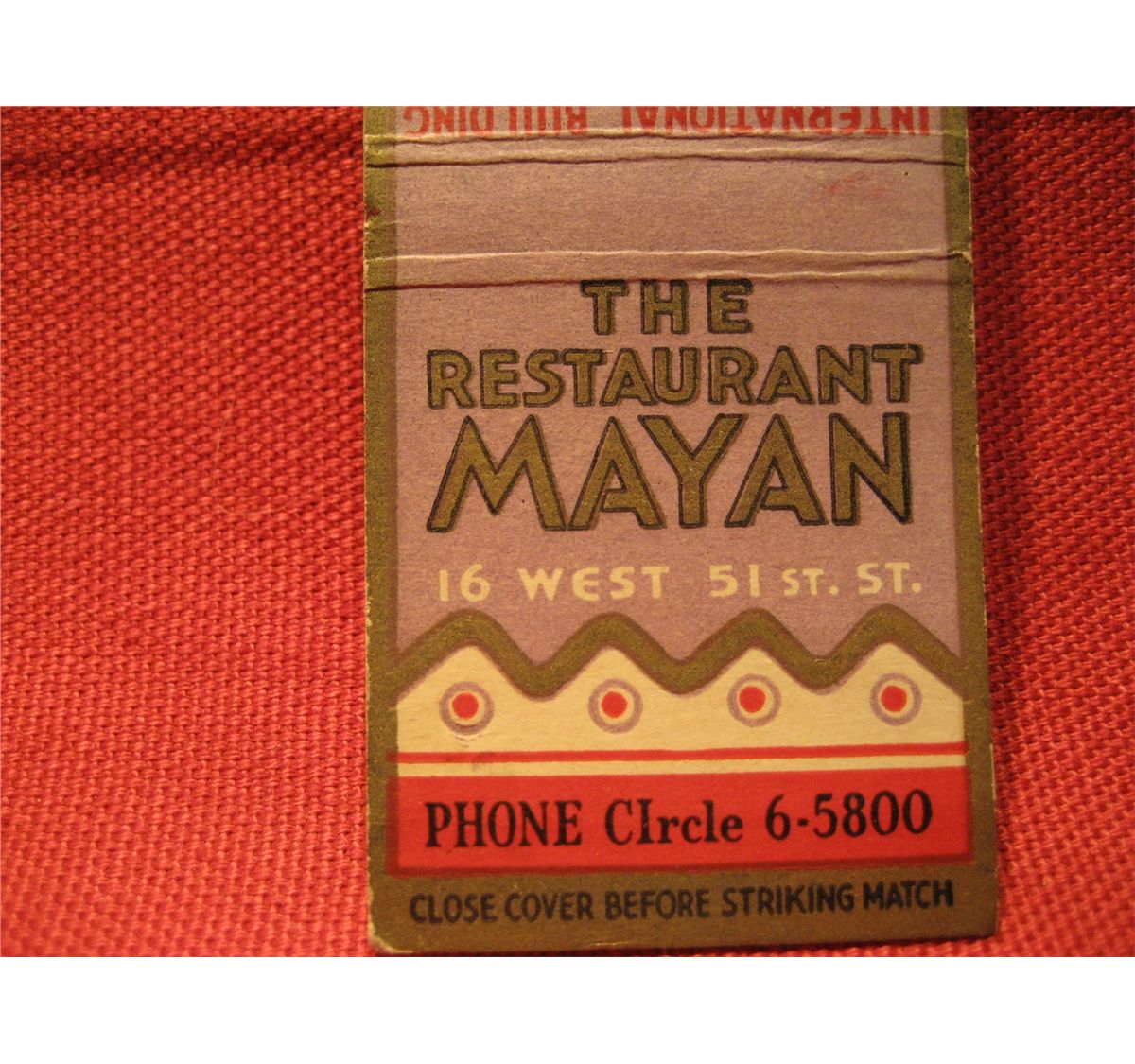 VINTAGE MATCHBOOK COVER THE RESTAURANT MAYAN