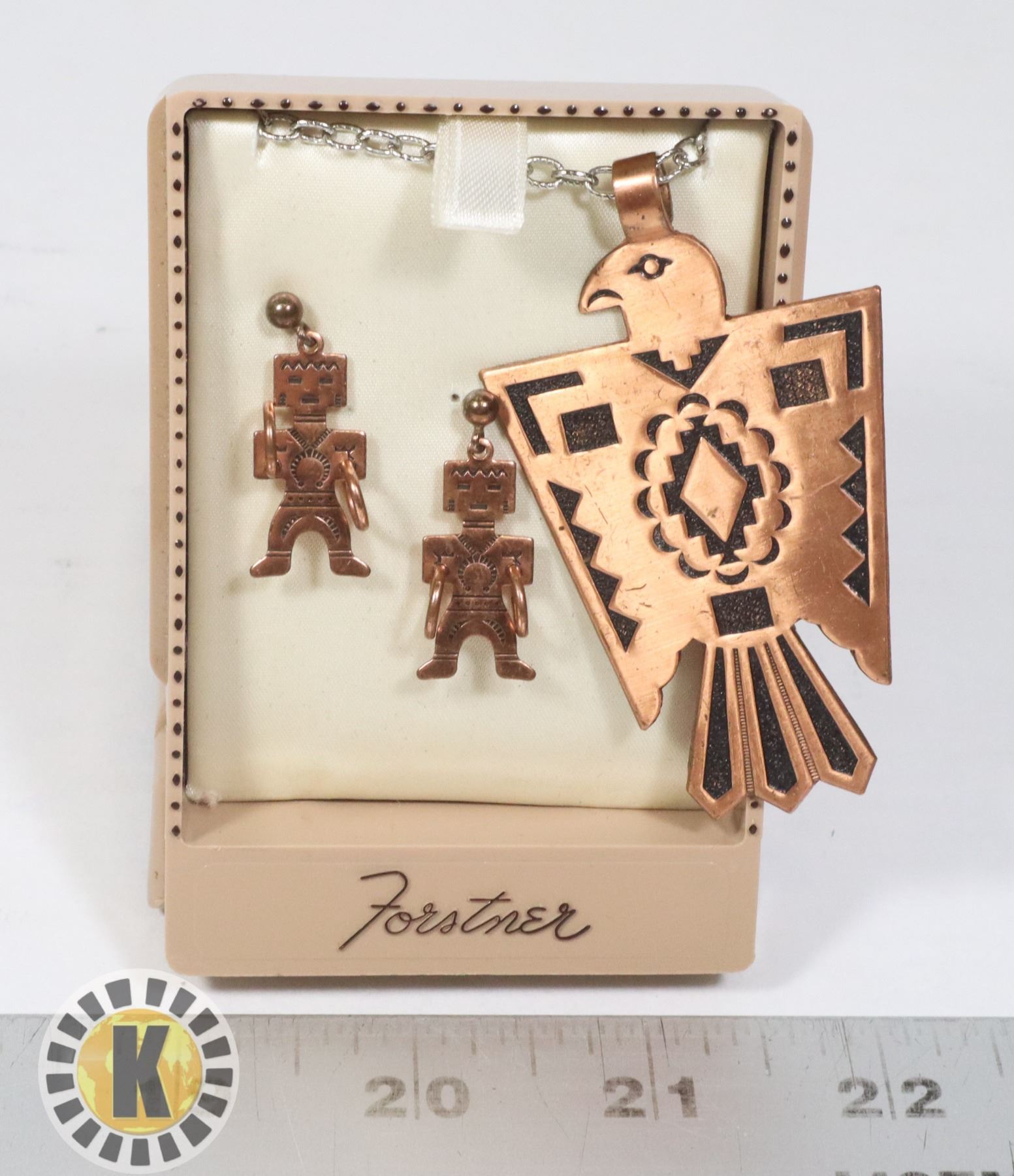 PENDANT ON MODERN CHAIN (EARRINGS AND PENDANT APPEAR TO BE COPPER)***ITEM(S) LOCATED IN LETHBRIDGE ALBERTA. SMALL ITEMS ONLY ARE AVAILABLE FOR FREE TRANSPORT TO EDMONTON OFFICE (READ AUCTION DETAILS FOR MORE INFORMATION)