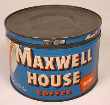 VINTAGE MAXWELL HOUSE COFFEE ADVERTISING TIN W/ LID - Approx. 3.5" tall, 5" diam.