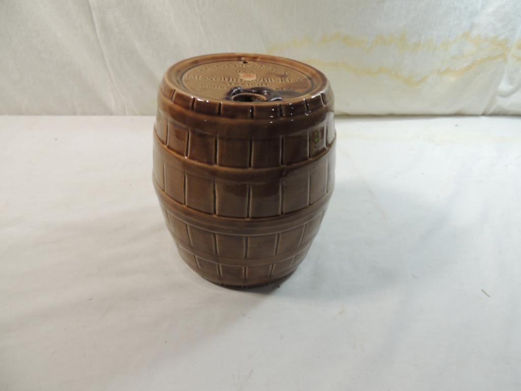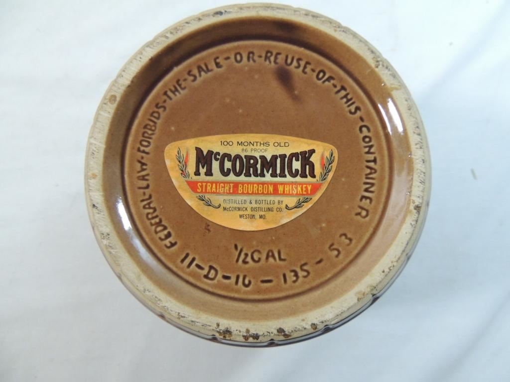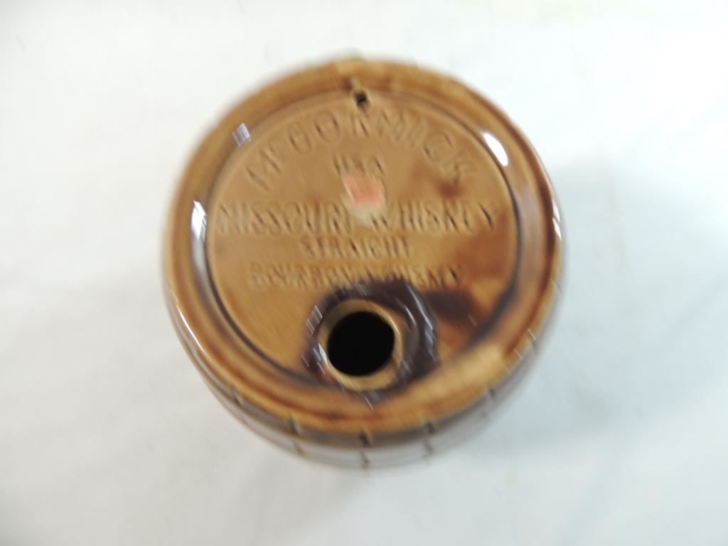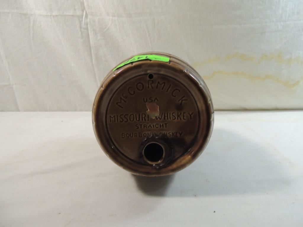MCCORMICK BOURBON WHISKEY VINTAGE CERAMIC BOTTLE BARREL BOTTLE AS SHOWN SEE PHOTO FOR MORE DETAILS.