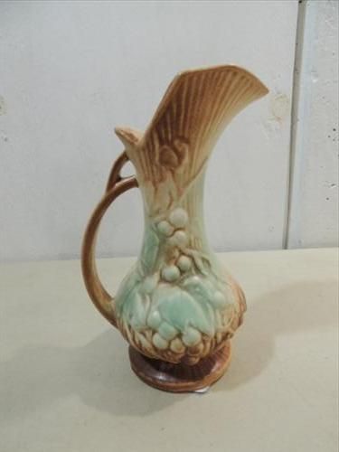 VINTAGE MCCOY DECO STYLE DECORATIVE PITCHER. 9"H. AS SHOWN. VIEW PICTURE FOR DETAIL.