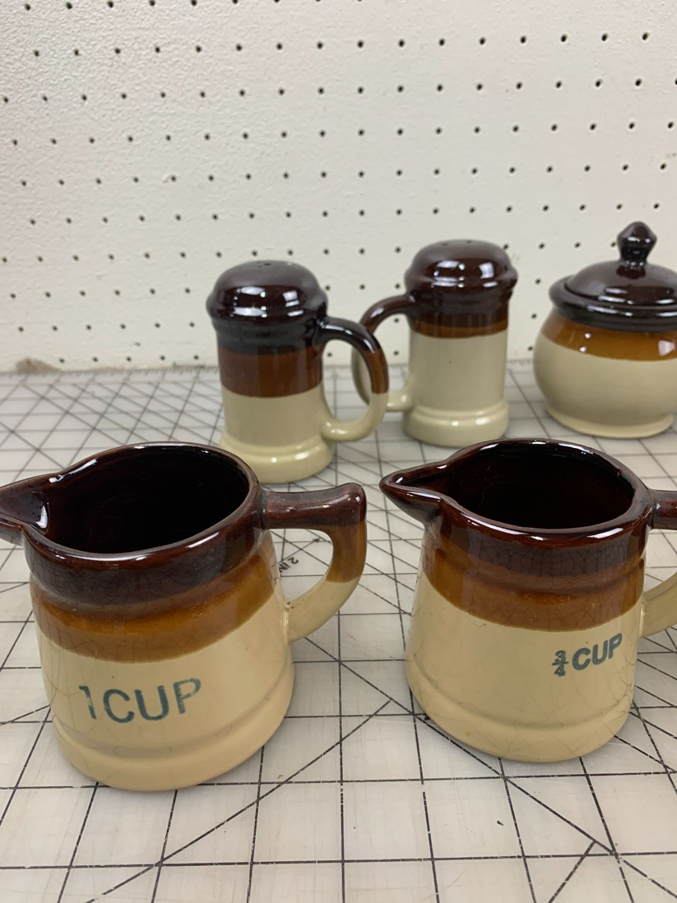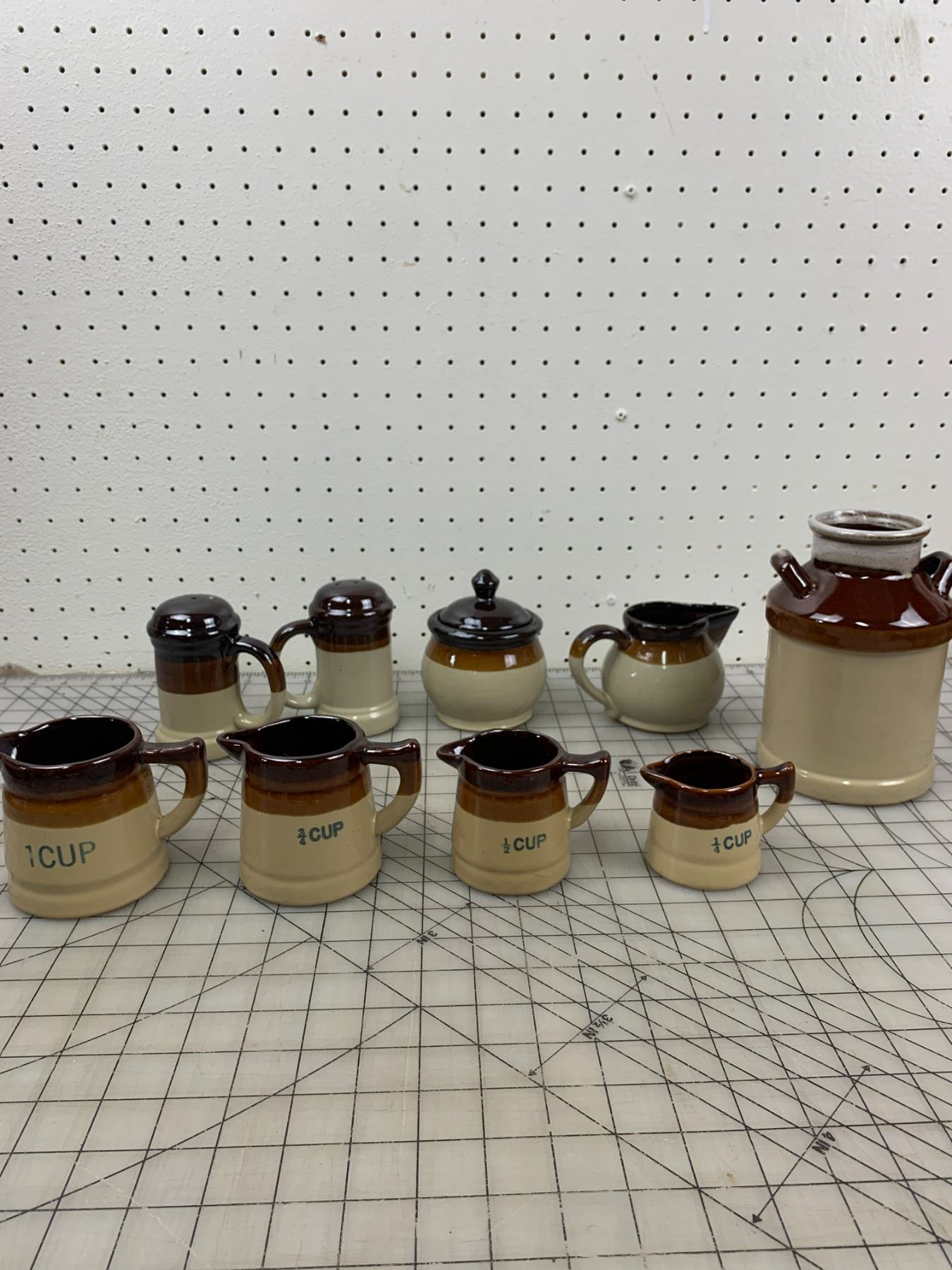 VINTAGE MEASURING CUPS CREAM AND SUGAR ETC