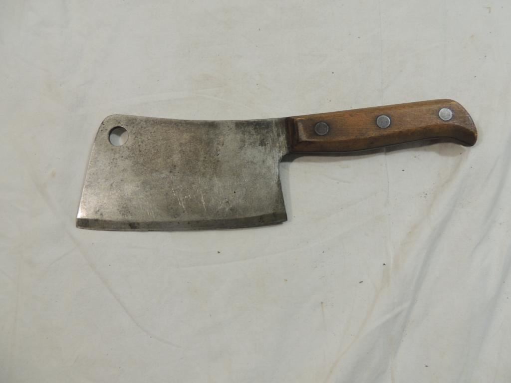 VINTAGE MEAT CLEAVER, VINTAGE KNIFE, MEAT CLEAVER KNIFE, CTUTLERY, KITCHEN KNIFE AS SHOWN SEE PHOTO FOR MORE DETAILS.