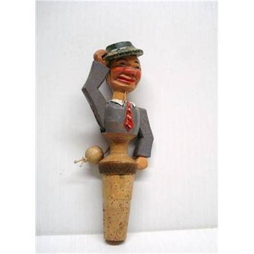 VINTAGE FIGURAL MECHANICAL ANRI BOTTLE STOPPER, HAND CARVED FROM WOOD,as per images - Ecellent condition - please see images - Measuring about 5 1/4" high,US Buyer to pay 7.00 plus insurance.THANKS.