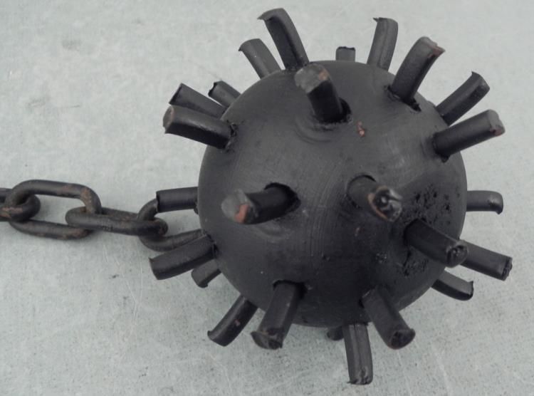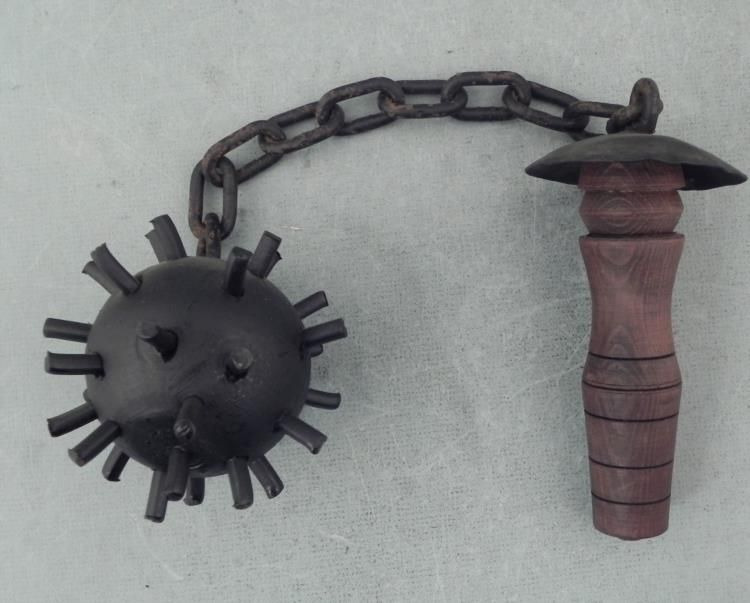VINTAGE MEDEVIL FLAIL-WOOD HANDLE & RAW SPIKES EXTEND FROM BALL * * `APPROX 18" IN LENGTH *